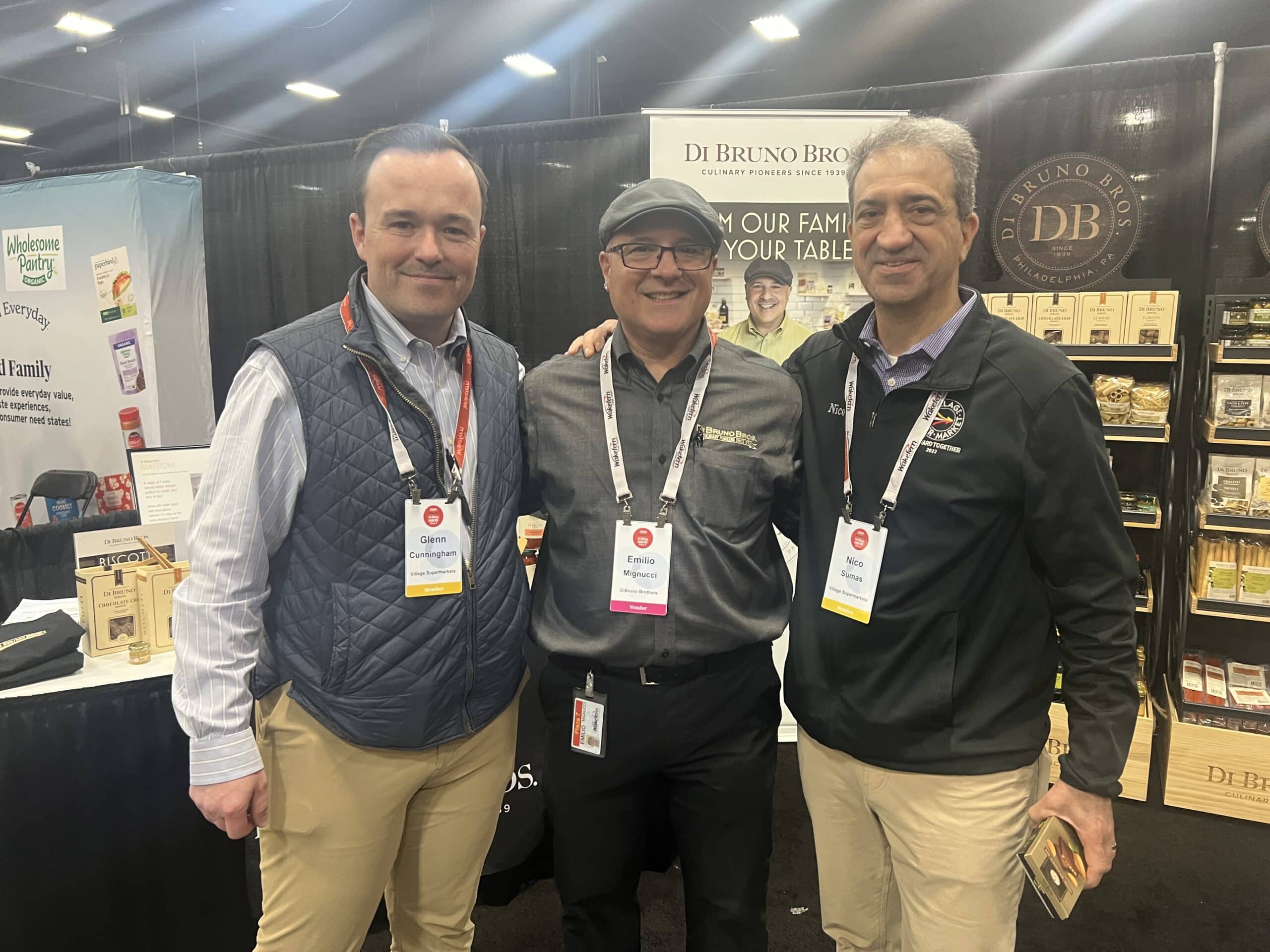 Wakefern held its semiannual selling show at the New Jersey Convention and Expo Center in Edison, NJ on April 7th and 8th. Chatting with Emilio Mignucci from Wakefern are Glenn Cunningham and Nico Sumas of Village Supermarkets.